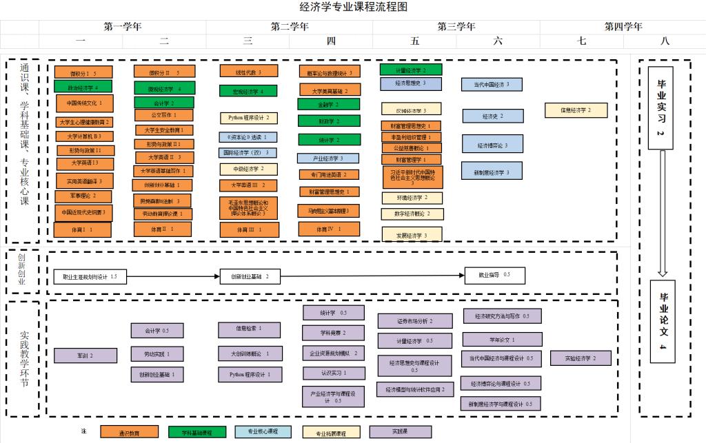 本科基本学制为4年,实行弹性学制3-6年。对休学创业学生,修业年限最长可延至8年。取得毕业资格的学生,经本人申请,并符合学士学位授予条件的,经学位委员会审查通过,授予经济学学士学位。