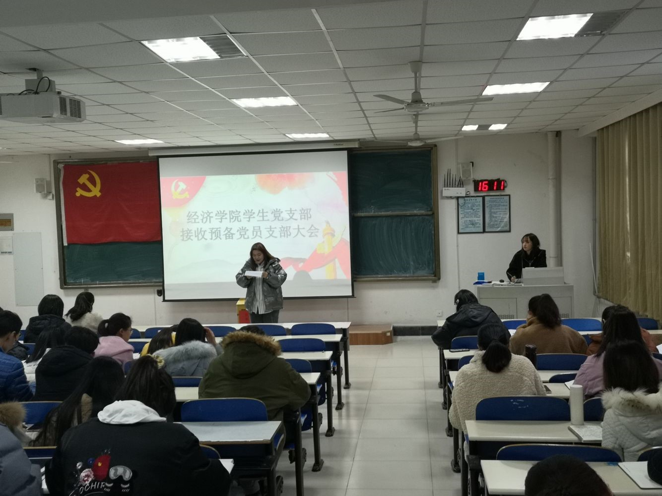 大会讨论接收徐娜、张环等27名发展对象成为预备党员,会议严格按照党组织接受预备党员程序,由发展对象向大会汇报自己对党的认识、入党动机、现实表现,介绍本人履历、家庭主要成员和主要社会关系等。随后,入党介绍人向大会介绍其主要政治思想、学习、工作生活等情况,并由支部委员向大会报告其现实表现的考察情况以及综合政治审查情况,与会党员对发展对象是否符合党员条件发表了意见。大会认为,徐娜、张环等27名同志基本符合党员条件,经与会正式党员投票表决,大会一致同意接收徐娜、张环等27名同志成为中共预备党员。