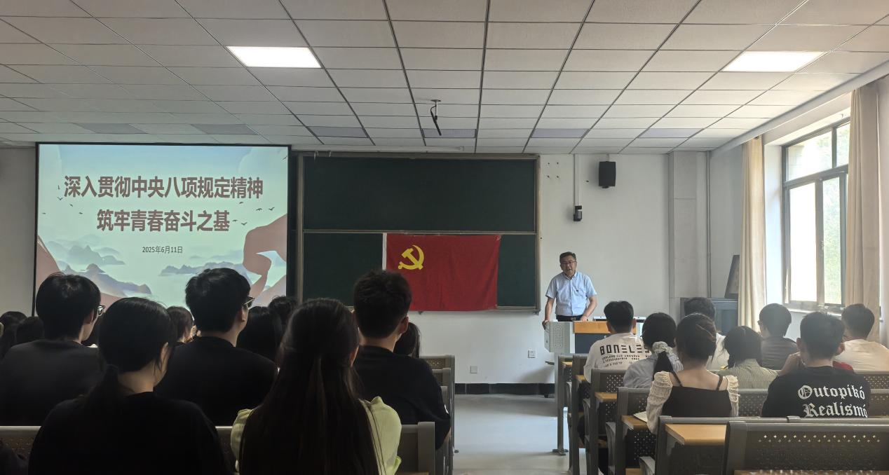 6月11日下午,乐动网页版党委书记程毅为学院全体学生党员讲授了主题为“深入贯彻中央八项规定精神学习教育,筑牢青春奋斗之基”的专题党课。学院全体辅导员参加,这也是2025届毕业生党员在校的最后一次党课。