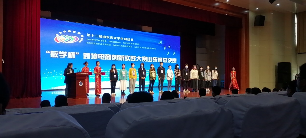 10月10日至11日,在第十三届山东省大学生科技节“敏学杯”跨境电商创新实践大赛上,山商学子喜获佳绩。由专业教师刘迅、姜书竹、李德震指导的,学生王子怡、王晓静、岳晓雨组成的参赛队伍“经院一队”脱颖而出,荣获一等奖;杜沣宸、张蕾、孙首业组成的参赛队伍“经院三队”荣获二等奖。
