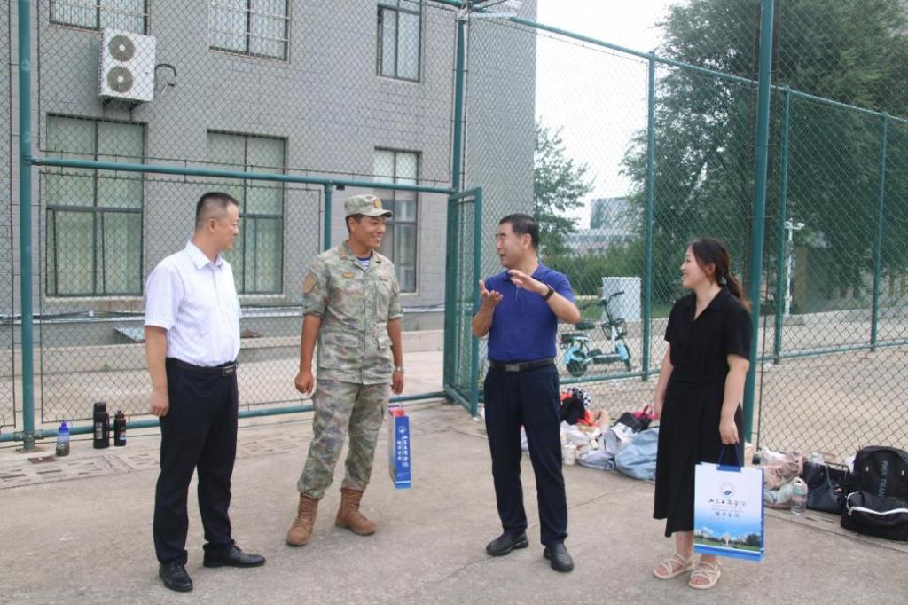 金秋正当值,军训淬青春。为鼓舞新生军训士气,磨砺坚强意志,培养优良作风,9月19日上午,乐动网页版党委书记姜宗建、院长唐松林、团总支副书记桂琳等一行前往东校区军训场地慰问承训教官和全体参训新生。