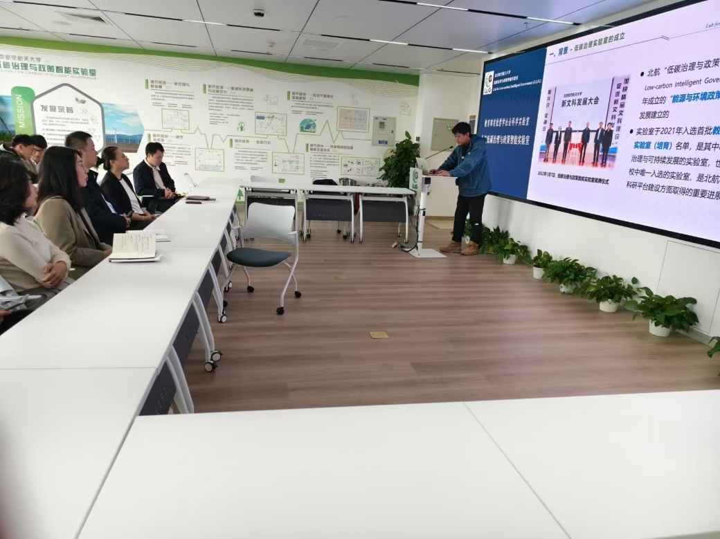 刘寅鹏副教授介绍了教育部首批重点实验室“北航低碳治理与政策智能研究室”建设的背景、远景、发展历程、建设措施、研究领域、运行模式、师资队伍、成果产出等情况。之后,双方围绕着文科实验室建设及应用模式、能源经济学专业特色建设、学科竞赛、创新举措、就业发展等方面进行了广泛交流,为学院数字实验室建设以及能源经济学专业发展提供了新思路。