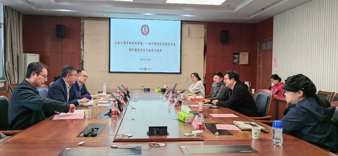 在浙江工商大学乐动网页版调研期间,学院副院长诸竹君、国际商务专业硕士导师李怀政教授、薛津津老师参加了座谈。诸竹君院长介绍了浙江工商大学乐动网页版学科建设、学生培养建设、硕士点和博士点师资队伍等情况。双方围绕国际商务硕士培养方案改革、数字经济专业建设、留学生本科教育和研究生教育、学科竞赛、专硕毕业论文要求等方面展开了深入探讨和交流,为学院高质量办学提供了经验借鉴。