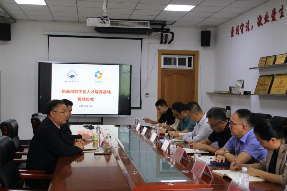 2025年9月22日下午,为了积极响应国家深化产教融合、提升人才培养质量的号召,适应数字经济时代对新商科人才的迫切需求,共探创新型、复合型、应用型数智经济人才培养新路径,山东工商学院乐动网页版与浙江思睿智训科技有限公司隆重举行“新商科数字化人才培养基地”签约授牌仪式。乐动网页版党委书记程毅、院长唐松林、副院长张广威、浙江思睿智训科技有限公司执行副总裁汤卫、山东区总经理卜小刚出席授牌仪式。国际经济与贸易专业和数字经济专业主任及相关教师代表参加活动。