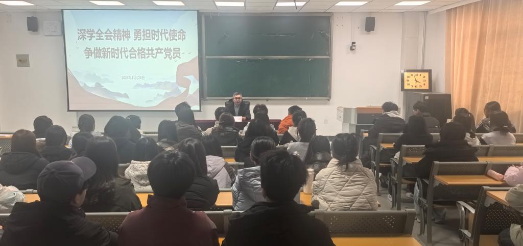 为深入学习贯彻习近平新时代中国特色社会主义思想和党的二十届四中全会精神,引导广大青年学生坚定理想信念、筑牢信仰根基,11月26日下午,乐动网页版党委书记程毅在5313室为学院学生党员、入党积极分子讲授了一场题为“深学全会精神勇担时代使命 争做新时代合格共产党员”的专题党课。
